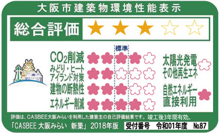 省エネ性能に優れている材料を使うなどの環境配慮、快適な室内、景観配慮などを含めた建物の品質を総合的に評価する「CASBEE」を取得しています。