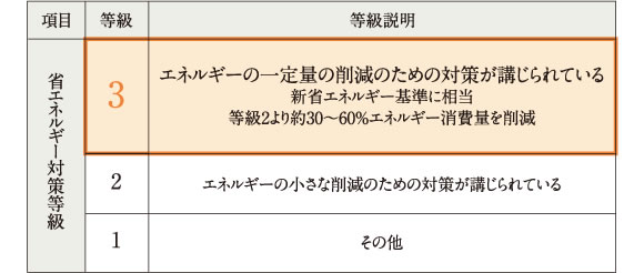※省エネルギー対策等級は「住宅の品質確保の促進等に関する法律」の住宅性能表示制度の10分野の一つである温熱環境の評価項目です。 温熱環境については、省エネルギー対策等級1から等級4まであり、等級4が最高ランクです。省エネルギー対策各等級の断熱性能レベルは、概ね各年代の省エネルギー基準に準拠しています。