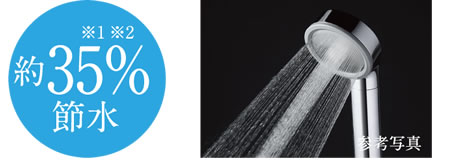 ※1.社団法人日本バルブ工業会設定「節湯種類の定義」の「従来型」シャワー(当社従来品 流量:10L/分)との比較