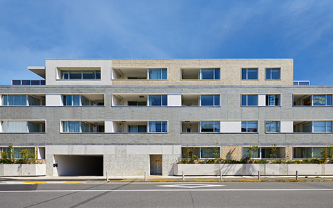 『グラン レ・ジェイド等々力』地下住居を積極的に用いることで、事業性 を工夫し隣地の集合住宅と一体で大きな緑地帯を設けている点、地下の中庭やメゾネット住戸の庭を活用して、住まいに豊かな奥行性をつくる点が評価されました。