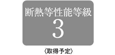 住宅性能表示制度による「設計住宅性能評価書(取得)」及び「建設住宅性能評価書(取得予定)」の温熱環境・エネルギー消費量に関する断熱等性能の等級において等級3を取得する予定です。